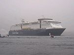 Mit einer Verspätung von 1,5 Stunden erreicht die Color Fantasy die Kieler Förde, wo sie trotz "Schietwetter" von tausenden Schaulustigen erwartet wird. |