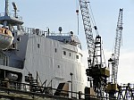 Auf der Neptunwerft in Rostock, wird zur Erweiterung der Frachtkapazität ein PKW-Hängedeck nachgerüstet, das bei Bedarf zum Einsatz kommt. |
