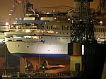 Bei der alljährlichen Werftzeit bei Blohm+Voss wird die Maxim Gorkiy optisch aufgefrischt und an die Phoenix-Farben angepasst. Am Schornstein fliegt der Albatros und der Stern am Bug sowie die Bauchbinde erstrahlen in einem kräftigen Türkis. |